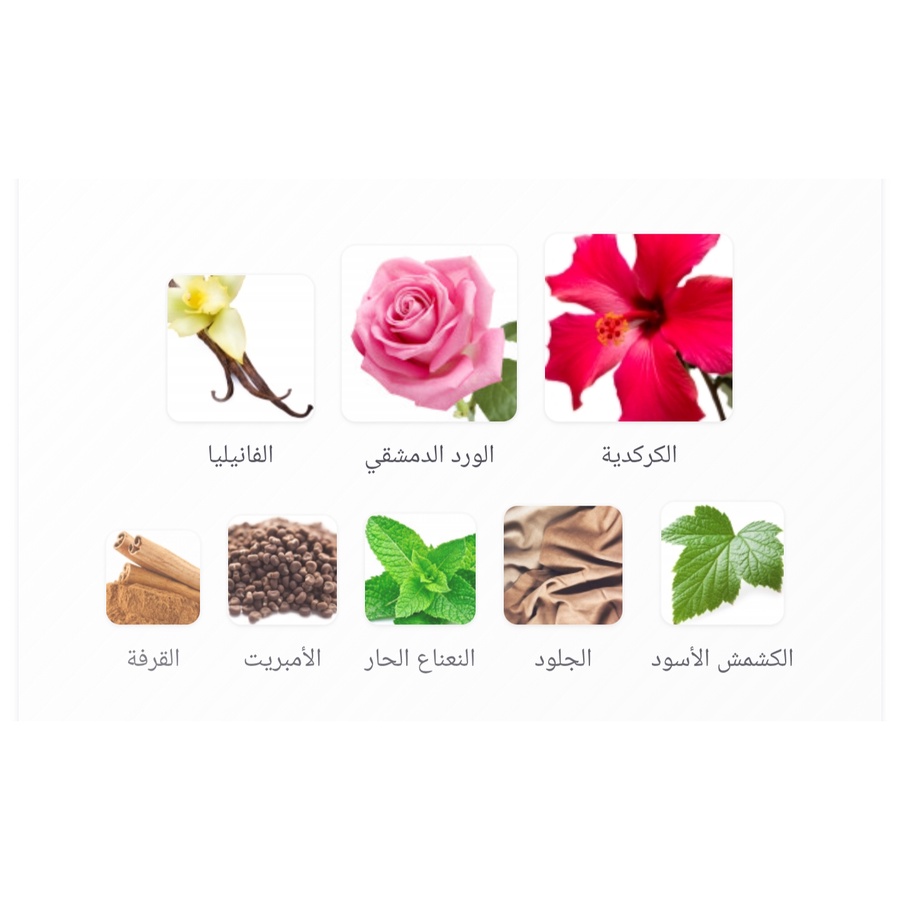 الرائحة: يوصف بأنه مزيج متناغم من الزهور الدافئة، الفواكه (الكشمش الأسود)، التوابل (القرفة)، والجلد، مما يعطي طابعاً زهرياً-جلدياً عميقاً.